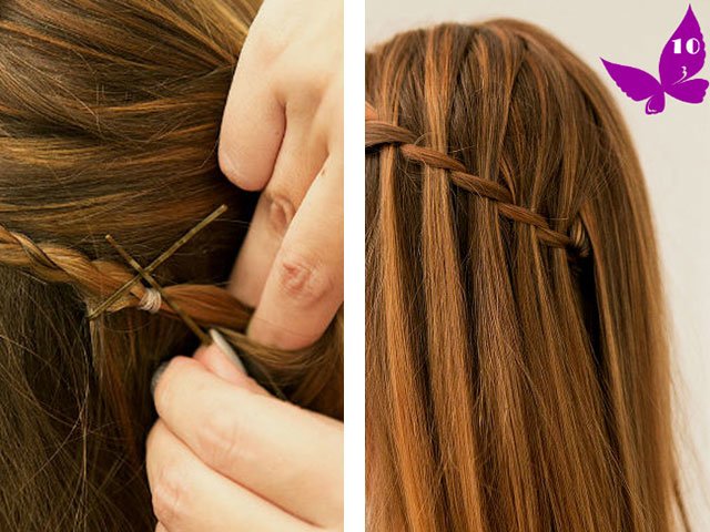 Совет! «Французский водопад» выглядит романтичнее и элегантнее, если немного подкрутить плойкой нижнюю часть волос.