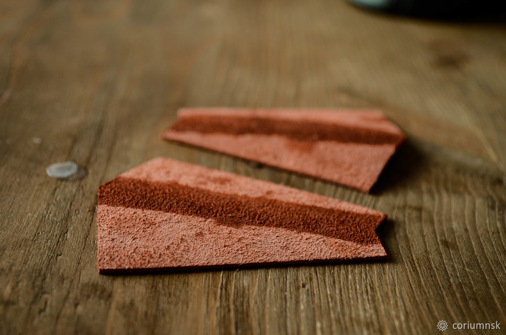 Переходим к раскрою кожи. Возьмите кожу и положите на неё лекала.