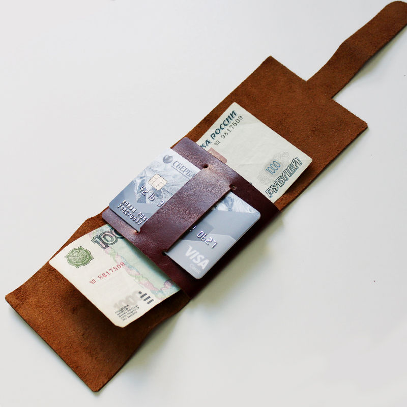 Поэтому я решил не тратиться и сшить кожаный кошелек для денег из подручного материала своими руками. Что в результате получилось вы видите на фотографии.