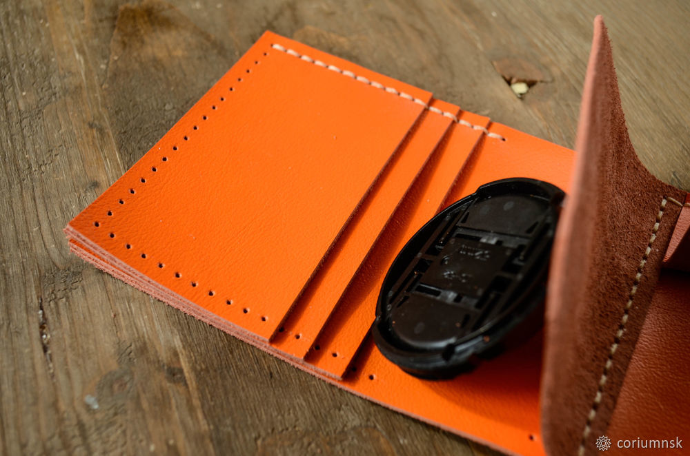 Кожа плотная и для того чтобы кошелёк хорошо складывался, нужно сформировать сгибы.